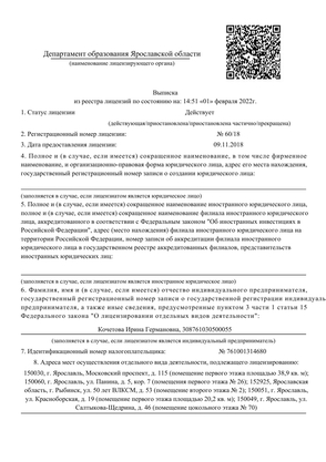 1.1. Положение об оказании платных образовательных услуг у ИП Кочетова И.Г. (далее – Положение) определяет порядок оказания платных образовательных услуг у ИП Кочетова И.Г. (далее ИП Кочетова И.Г.). 1.2. Положение создано на основании Федерального закона №273-ФЗ от 29.12.2012г. «Об образовании в Российской Федерации», Постановления Правительства Российской Федерации от 15 августа 2017г. № 706 «Об утверждении правил оказания платных образовательных услуг». 2. Основные понятия, используемые в Положении 2.1. В настоящем положении используются следующие понятия: 2.1.1. Дополнительная общеобразовательная программа (далее - Образовательная программа) - комплекс основных характеристик образования (объём, содержание, планируемые результаты). 2.1.2. Обучение - процесс овладения иностранным языком, реализуемый с использованием образовательных программ ИП Кочетова И.Г. (ЦРР «Знаечка») (далее – Организация). 2.1.3. Обучающийся - лицо в возрасте от 1 года и старше, зачисляемое на обучение по Образовательной программе организации. 2.1.4. Организация – ИП Кочетова И.Г. 2.1.5. Заказчик - родитель (законный представитель) несовершеннолетнего Обучающегося 2.1.6. Исполнитель - Организация, осуществляющая образовательную деятельность и предоставляющая платные образовательные услуги Обучающемуся. 2.1.7. Договор об оказании платных образовательных услуг за счёт средств физических и (или) юридических лиц (далее – Договор) – документ, заключаемый в простой письменной форме между Обучающимся и (или) Заказчиком с одной стороны и Организацией с другой стороны в порядке и на основаниях определённых Законом об образовании. 2.1.8. Образовательный процесс - практическая реализация Образовательной программы для Обучающегося с использованием материально-технического обеспечения оценочных и методических материалов и педагогических работников Организации. 2.1.9. Образовательные услуги (далее –Услуги) - возмездная деятельность организации по реализации Образовательных программ и организации образовательного процесса. 2.1.10. Учебный год - условный временной период, в течение которого возможна реализация рабочих программ учебных курсов (разделов, модулей) Образовательной программы, зафиксированный в календарном учебном графике. 3. Порядок оказания услуг в Организации 3.1. Образовательные услуги в Организации оплачиваются Заказчиком в соответствии с условиями договора на обучение. 3.2. Объём и условиях, предоставляемых Образовательных услуг прописанные в Договоре на обучение. 3.3. Организация обязана обеспечить Заказчику оказание платных Образовательных услуг в полном объёме в соответствии с образовательными программами (частью образовательной программы) и условиями договора. 3.4. Представитель Организации обязан довести до Заказчика информацию, содержащую сведения о предоставлении платных Образовательных услуг в порядке и объёме, которые предусмотрены законом Российской Федерации «О защите прав потребителей» и Федеральным Законом «Об образовании в Российской Федерации». 4. Ответственность Организации и Заказчика 4.1. За неисполнение либо ненадлежащее исполнение обязательств по Договору Исполнитель и Заказчик несут ответственность, предусмотренную Договором и Законодательством Российской Федерации. 4.2. При обнаружении недостатка платных Образовательных услуг, в том числе 